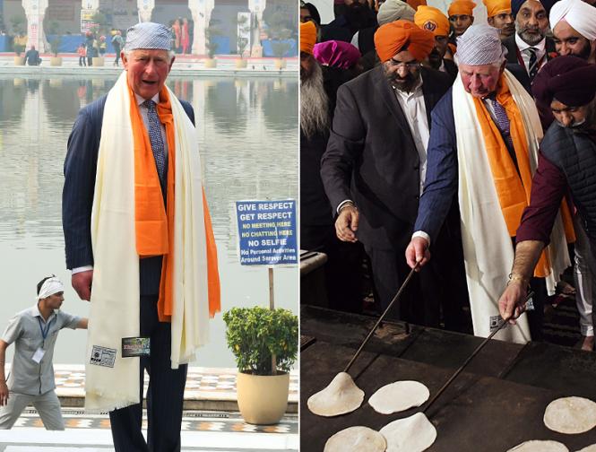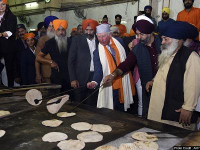 ब्रिटेन के प्रिंस चार्ल्स बांग्ला साहिब गुरुद्वारे गए और लंगर के लिए चपाती बनाने में भी मदद की।