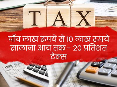 पाँच लाख रुपये से 10 लाख रुपये सालाना आय तक - 20 प्रतिशत टैक्स