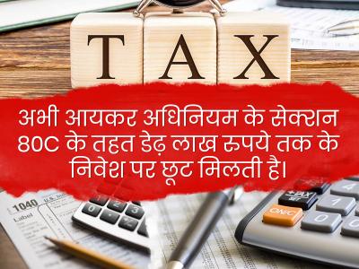 अभी आयकर अधिनियम के सेक्शन 80C के तहत डेढ़ लाख रुपये तक के निवेश पर छूट मिलती है।