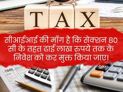सीआईआई की माँग है कि सेक्शन 80सी के तहत ढाई लाख रुपये तक के निवेश को कर मुक्त किया जाए।
