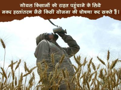 गोयल किसानों को राहत पहुंचाने के लिये नकद हस्तांतरण जैसे किसी योजना की घोषणा कर सकते हैं।