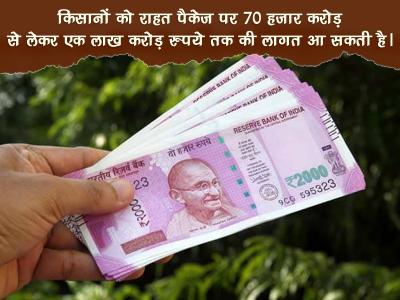 किसानों को राहत पैकेज पर 70 हजार करोड़ से लेकर एक लाख करोड़ रुपये तक की लागत आ सकती है।