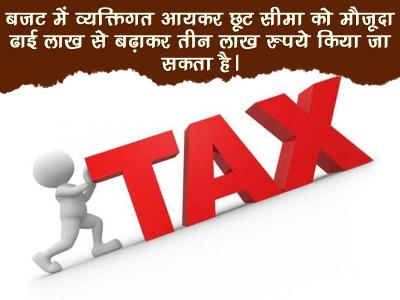 बजट में व्यक्तिगत आयकर छूट सीमा को मौजूदा ढाई लाख से बढ़ाकर तीन लाख रुपये किया जा सकता है।