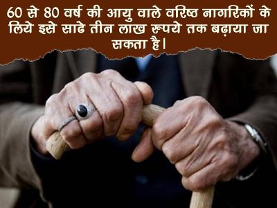60 से 80 वर्ष की आयु वाले वरिष्ठ नागरिकों के लिये इसे साढे तीन लाख रुपये तक बढ़ाया जा सकता है।