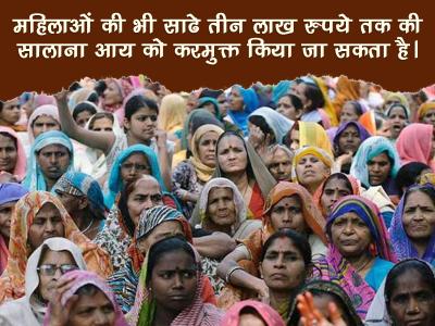 महिलाओं की भी साढे तीन लाख रुपये तक की सालाना आय को करमुक्त किया जा सकता है।