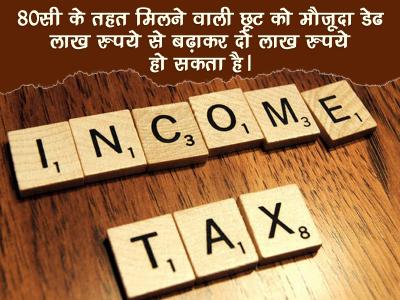 80सी के तहत मिलने वाली छूट को मौजूदा डेढ लाख रुपये से बढ़ाकर दो लाख रुपये हो सकता है।