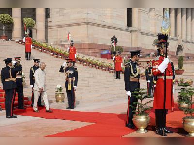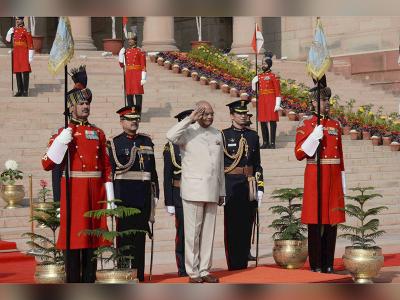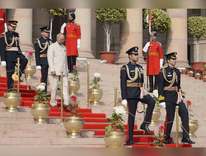 अभिभाषण से पहले संसद के लिए कुछ इस अंदाज में अपने भवन से निकलते राष्ट्रपति रामनाथ कोविंद।