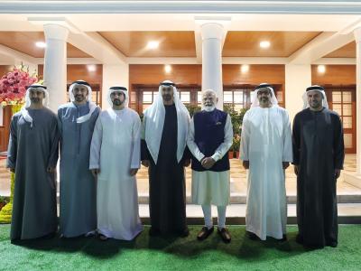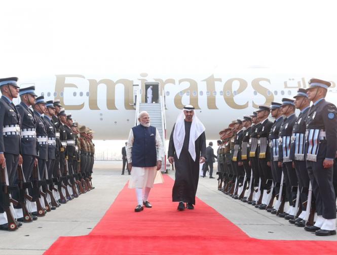 साथ ही ऊर्जा, अंतरिक्ष और असैन्य परमाणु क्षेत्रों में सहयोग को बढ़ावा देने पर भी सहमति जताई। प्रधानमंत्री नरेन्द्र मोदी और यूएई के राष्ट्रपति शेख मोहम्मद बिन जायद अल नाह्यान ने संबंधों को मजबूत करने के लिए एक व्यापक एजेंडा पेश किया। मोदी ने दिल्ली हवाई अड्डे पर अल नाह्यान का गले मिलकर स्वागत किया।