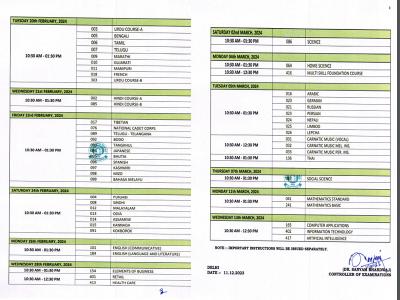 बोर्ड ने 12वीं कक्षा के परीक्षा कार्यक्रम में भी कुछ बदलाव किए हैं। सीबीएसई कक्षा 12 फैशन स्टडीज परीक्षा पहले 11 मार्च को होने वाली थी, जिसे 21 मार्च तक के लिए स्थगित कर दिया गया है। सीबीएसई कक्षा 10 की बोर्ड परीक्षाएं 15 फरवरी से शुरू होंगी और 13 मार्च को समाप्त होंगी। कक्षा 12 की बोर्ड परीक्षा 15 फरवरी को शुरू होंगी और 2 अप्रैल को समाप्त होंगी।