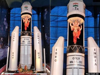 तेलंगाना में चंद्रयान-2 के सेलिब्रेशन को गणेश चतुर्थी के साथ जोड़ दिया और भगवान गणेश को सैटेलाइट में बैठाया गया है।