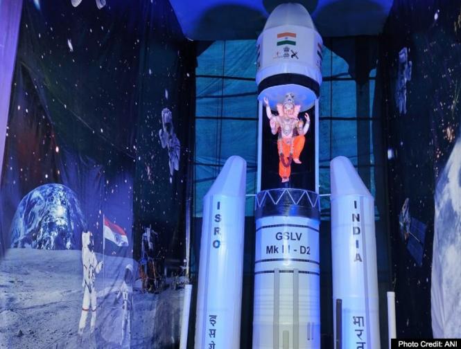 महाराष्ट्र की राजधानी मुंबई में चंद्रयान 2 थीम पर भगवान गणपति 'पंडाल' की स्थापना की गई है, जहां अद्भुत नजारा दिखाई दे रहा है।