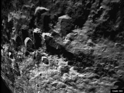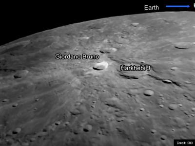प्रणोदन मॉड्यूल और लैंडर मॉड्यूल के बृहस्पतिवार को अलग होने के बाद ली गईं तस्वीरों में चंद्रमा की सतह पर गड्ढे दिखाई देते हैं जिन्हें इसरो द्वारा जारी की गईं तस्वीरों में 'फैब्री', 'जियोर्डानो ब्रूनो' और 'हरखेबी जे' के रूप में चिह्नित किया गया है।