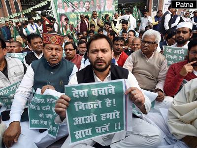 बिहार में राजद नेता तेजस्वी यादव इस बिल के खिलाफ प्रदर्शन कर रहे हैं। उन्होंने कहा कि यह बिल असंवैधानिक है, कोई सरकार भारतीय समाज को धर्म के आधार पर तोड़ नहीं सकती है।"