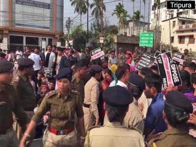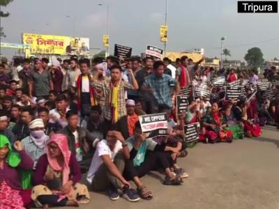 त्रिपुरा में भी नागरिकता संशोधन विधेयक के विरोध में रैली निकालकर इसे वापस लिए जाने की मांग की गई।