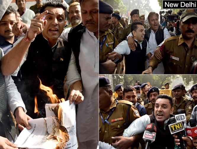 नागरिकता संसोधन विधेयक की कॉपी फाड़कर लोगों ने किया विरोध