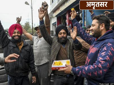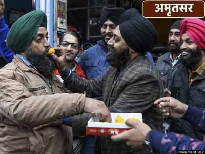 अमृतसर में सिख समुदाय के लोगों ने मिठाई बांटकर खुशी का इजहार किया।