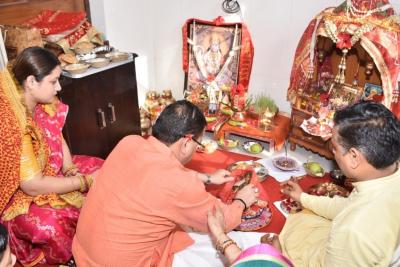शारदीय नवरात्रि की नवमी पर सीएम योगी आदित्यनाथ और सीएम पुष्कर सिंह धामी ने किया 'कन्या पूजन', देखें तस्वीरें
