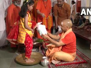1 / 6उत्तर प्रदेश के मुख्यमंत्री योगी आदित्यनाथ ने नवमी के पावन अवसर पर गोरखपुर के गोरखनाथ मंदिर में कन्या पूजन किया। (फोटो: Twitter/ANI)2 / 6इस दौरान सीएम योगी ने कन्यायों के पैर धोये उनके माथे पर रोली, चंदन, दही, अक्षत का तिलक लगाकर विधि विधान से पूजन किया। (फोटो: Twitter/ANI)3 / 6इसके बाद सीएम योगी ने कन्याओं को भोजन कराकर दक्षिणा व उपहार देकर उनका आशीर्वाद लिया। (फोटो: Twitter/ANI)4 / 6सीएम योगी आदित्यनाथ ने मीडिया से बात करते हुए कहा, यह मातृ शक्ति के सम्मान से जुड़ा महत्वपूर्ण पर्व है। इसलिए वर्ष में दो बार और मातृ शक्ति के प्रति सर्वोच्च सम्मान व्यक्त करने के लिए लोग इन आयोजनों से जुड़ते हैं। मैं प्रदेश वासियों को शारदीय नवरात्रि की शुभकामनाएं देता हूं। (फोटो: Twitter/ANI)5 / 6 उत्तराखंड के मुख्यमंत्री पुष्कर सिंह धामी ने भी देहरादून में नवमी के अवसर पर 'कन्या पूजन' किया। (फोटो: Twitter/ANI)6 / 6देशभर में आज नवमी का पर्व धूमधाम से मनाया जा रहा है। घरों में लोग कन्या पूजन कर रहे हैं, वहीं मंदिरों में सुबह से भव्य पूजा-अर्चना चल रही हैं। (फोटो: Twitter/ANI)