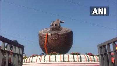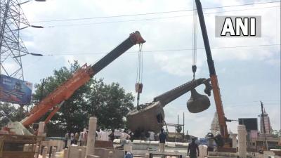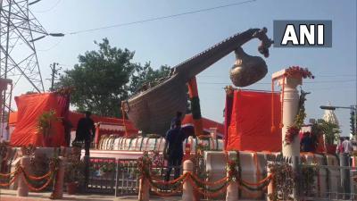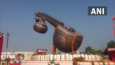 लता मंगेशकर चौक पर 14 टन वजनी वीणा लगाई गई है। जिसकी लंबाई 10.8 मीटर और ऊंचाई 12 मीटर है। (फोटो: Twitter/ANI)