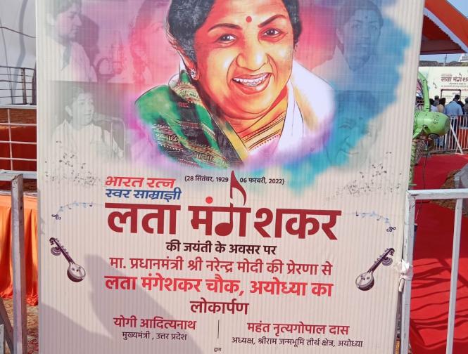 सुर साम्राज्ञी लता मंगेशकर की जयंती पर उत्तर प्रदेश के अयोध्या में उनकी स्मृति में एक चौक का नामकरण किया जा रहा है। (फोटो: Twitter/ANI)