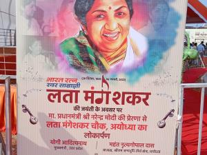 1 / 6सुर साम्राज्ञी लता मंगेशकर की जयंती पर उत्तर प्रदेश के अयोध्या में उनकी स्मृति में एक चौक का नामकरण किया जा रहा है। (फोटो: Twitter/ANI)2 / 6लता मंगेशकर चौक नाम के इस चौराहे का उद्घाटन आज मुख्यमंत्री योगी आदित्यनाथ करेंगे। चौक के उद्घाटन के मौके पर केंद्रीय पर्यटन मंत्री जी किशन रेड्डी भी मौजूद रहेंगे। (फोटो: Twitter/ANI)3 / 67.9 करोड़ रुपये के अनुमानित बजट से लता मंगेशकर चौक को विकसित किया गया है। (फोटो: Twitter/ANI)4 / 6लता मंगेशकर चौक पर 14 टन वजनी वीणा लगाई गई है। जिसकी लंबाई 10.8 मीटर और ऊंचाई 12 मीटर है। (फोटो: Twitter/ANI)5 / 6मंगेशकर की 93वीं जयंती पर पीएम मोदी ने ट्वीट कर लिखा, 'लता दीदी की जयंती पर आज उन्हें याद कर रहा हूं। याद करने को बहुत कुछ है...कई ऐसे संवाद हैं जिनमें उन्होंने मुझ पर अपना प्यार बरसाया। मुझे खुशी है कि आज उनकी स्मृति में अयोध्या में एक चौक का नामकरण किया जाएगा। देश की महान हस्तियों में एक लता दीदी को यह उचित श्रद्धांजलि होगी।' (फोटो: Twitter)6 / 6बता दें कि लता मंगेशकर के निधन के बाद सीएम योगी आदित्यनाथ ने अयोध्या के नया घाट को उनके नाम पर विकसित करने की घोषणा की थी। (फोटो: Twitter/ANI)