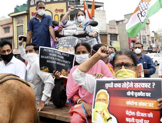 पेट्रोल-डीजल को लेकर कांग्रेस का प्रदर्शन, बैलगाड़ी पर बैठकर निकाला जुलूस, see pics