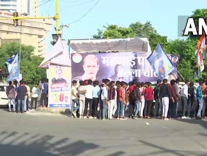 कई कार्यकर्ताओं ने बैनर एवं पोस्टरों के जरिये यह मांग भी की कि राहुल को एक बार फिर से पार्टी की कमान संभालनी चाहिए। (फोटो: Twitter/ANI)