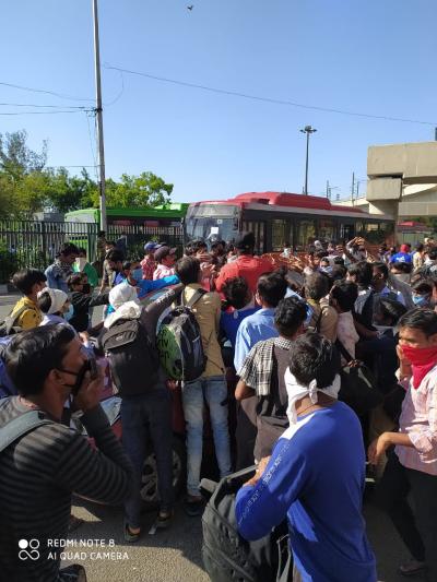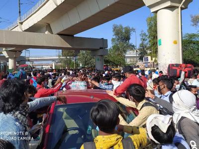 दिल्ली से लोगों का पलायन जारी, आनंद विहार पर दिखी जबर्दस्त भीड़, देखें तस्वीरें