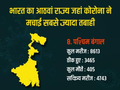 पश्चिम बंगाल में कोरोना वायरस के कुल मरीज 8613