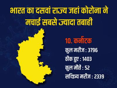 कर्नाटक में कोरोना वायरस के कुल मरीज 3796