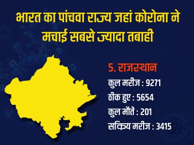 राजस्थान में कोरोना वायरस के कुल मरीज 9271