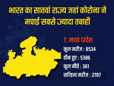 मध्यप्रदेश में कोरोना वायरस के कुल मरीज 8534