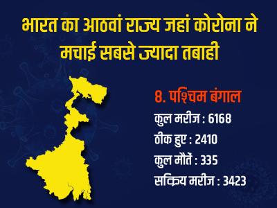 पश्चिम बंगाल में कोरोना वायरस के कुल मरीज 6168