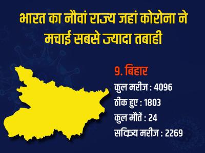 बिहार में कोरोना वायरस के कुल मरीज 4096