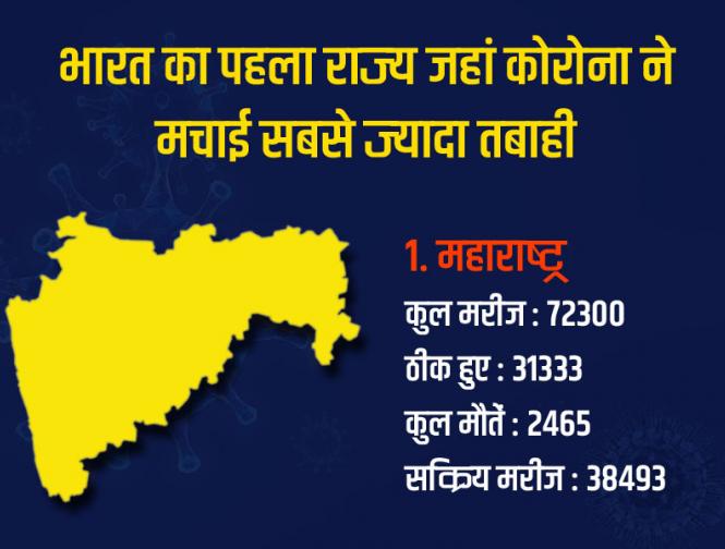 महाराष्ट्र में कोरोना वायरस के कुल मरीज 72300