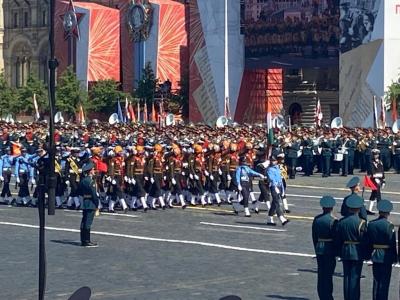 भारतीय सशस्त्र बलों के तीनों अंगों की 75 सदस्यीय टुकड़ी ने रूसी सशस्त्र बलों और 17 देशों की सैन्य टुकड़ियों के साथ इस परेड में हिस्सा लिया। बयान के अनुसार, दूसरे विश्व युद्ध के दौरान ब्रिटिश भारतीय सशस्त्र बल मित्र राष्ट्र की सेना का सबसे बड़ा हिस्सा थे और उन्होंने उत्तरी और पूर्वी अफ्रीका के अभियानों, पश्चिमी रेगिस्तान के अभियानों और बड़ी ताकतों का सामना किया था। इन अभियानों में 87,000 से ज्यादा भारतीय सैनिक शहीद हुए थे और 34,354 घायल हुए थे।