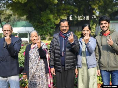 दिल्ली के मुख्यमंत्री और आम आदमी पार्टी नेता अरविंद केजरीवाल अपनी पत्नी माता-पिता के साथ मतदान देने पहुंचे।