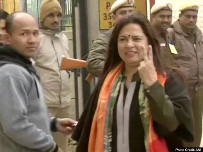 दिल्ली की बीजेपी सांसद मीनाक्षी लेखी भी वोट डालने के लिए पोलिंग बूथ पहुंची।