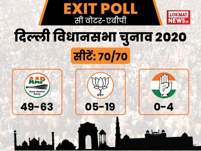 एबीपी न्यूज-सी वोटर के एग्जिट पोल के मुताबिक, दिल्ली में आम आदमी पार्टी को 49 से 63, बीजेपी को 15 से 19 और कांग्रेस को 0-4 सीटें मिलने का अनुमान है।