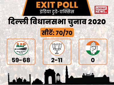 इंडिया टु़डे-एक्सिस के एग्जिट पोल के मुताबिक, दिल्ली में आम आदमी पार्टी को 59-68 और बीजेपी को 2-11 सीटें मिलने का अनुमान है।
