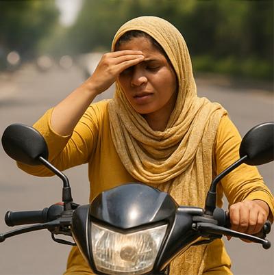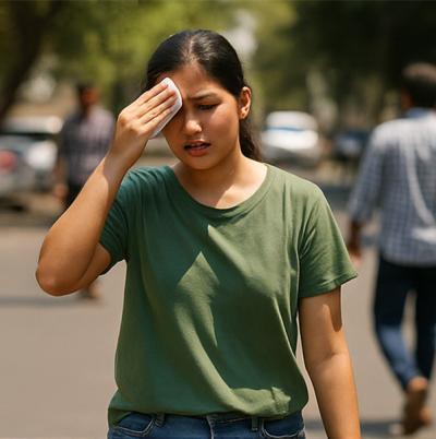 ‘रियल फील टेम्प्रेचर’, यह माप है कि वायु तापमान और सापेक्ष आर्द्रता दोनों को ध्यान में रखते हुए मानव शरीर को कितना गर्म या ठंडा महसूस होता है। मौसम विभाग ने बताया कि आर्द्रता का स्तर 39 प्रतिशत से 24 प्रतिशत के बीच रहा। आईएमडी ने सोमवार को राजधानी के लिए बुधवार तक ऑरेंज अलर्ट जारी किया, जिसमें लोगों को सतर्क रहने और लू से खुद को बचाने के लिए कदम उठाने को आगाह किया गया। (Photo Credit: AI)