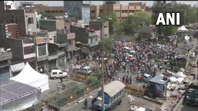 जहांगीरपुरी में शनिवार को हनुमान जयंती के दिन दो समुदायों के बीच झड़प हुई थी, जिसमें आठ पुलिसकर्मी और एक स्थानीय निवासी घायल हो गया था। (फोटो: Twitter/ANI)