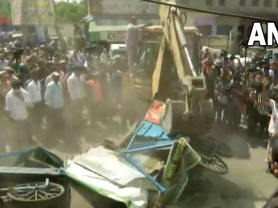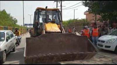 आज सुबह एमसीडी के 9 बुलडोजर दिल्ली के जहांगीरपुर इलाके में अतिक्रमण विरोधी कार्रवाई के लिए पहुच गए थे। (फोटो: Twitter/ANI)