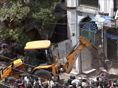 जहांगीरपुरी में मस्जिद के पास का अवैध कब्जा अभी भी बुलडोजर से हटाया गए हैं। (फोटो: Twitter/ANI)