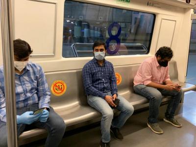 मेट्रो में यात्रा करने के लिए अब मोबाइल में आरोग्य सेतु ऐप अनिवार्य होगा और हर यात्री को मास्क लगाना भी जरूरी होगा। (फोटो सोर्स- डीएमआरसी ट्विटर)