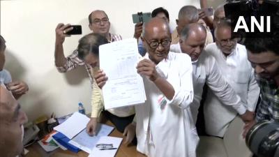 मध्यप्रदेश के पूर्व मुख्यमंत्री दिग्विजय सिंह ने पार्टी अध्यक्ष पद के लिए नामांकन फार्म लिया है और वह कल नामांकन दाखिल करेंगे। (फोटो: Twitter/ANI)