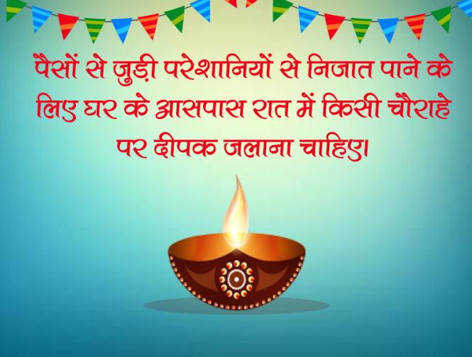 पैसों से जुड़ी परेशानियों से निजात पाने के लिए घर के आसपास रात में किसी चौराहे पर दीपक जलाना चाहिए।