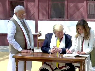 साबरमती आश्रम से वह मोटेरा स्टेडियम के लिए रवाना हो गए हैं। अमेरिकी राष्ट्रपति डोनाल्ड ट्रंप ने साबरमती आश्रम की विजिटर बुक महात्मा गांधी के बारे में लिखना भूल गए हैं, अमेरिकी राष्ट्रपति डोनाल्ड ट्रंप ने साबरमती आश्रम की विजिटर बुक में लिखा 'मेरे अच्छे दोस्त प्रधानमंत्री नरेंद्र मोदी इस शानदार दौरे के लिए धन्यवाद।