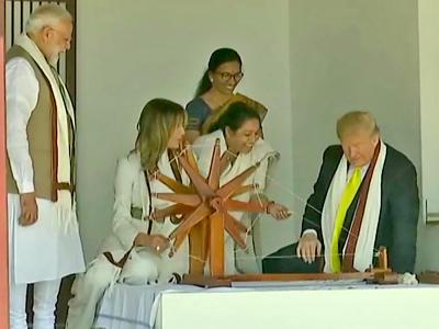 Donald Trump Visit in India: साबरमती आश्रम में डोनाल्ड ट्रंप और मेलानिया ने चलाया गांधी जी का चरखा, देखें तस्वीरें