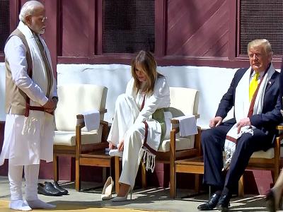 साबरमती आश्रम में प्रधानमंत्री नरेंद्र मोदी के साथ अमेरिकी राष्ट्रपति डोनाल्ड ट्रंप और मेलानिया ट्रंप ने चरखा चलाया। पीएम मोदी ने ट्रंप को साबरमति आश्रम के बारे में भी बताया।